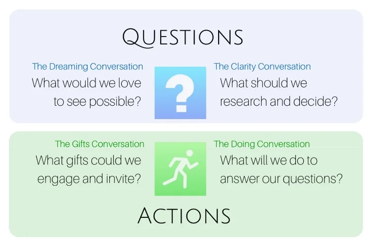 The latest research indicates that the core difference between flourishing and floundering groups is the quality of their conversations. Floundering groups struggle to focus, align and get things done because they are working from no questions, the wrong questions or the right questions at the wrong time.